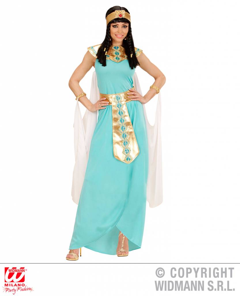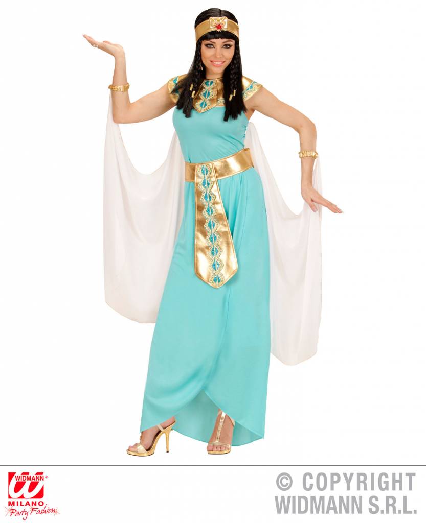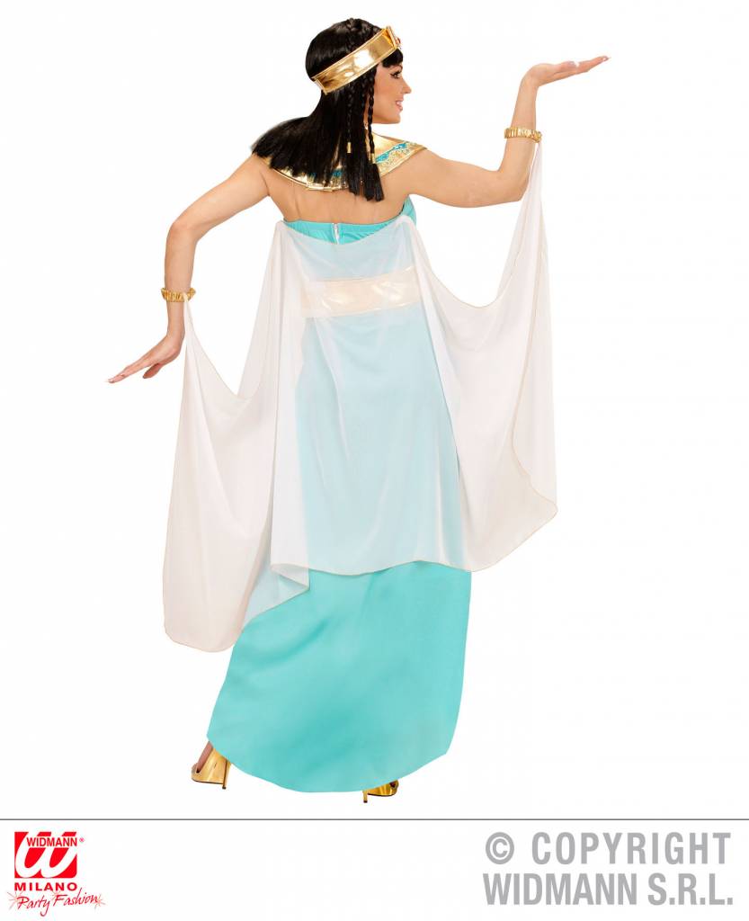 Elegante blauwe Egyptische godinnen jurkjes met cape voor dames zijn voor een prachtige verkleedpartij met carnaval.