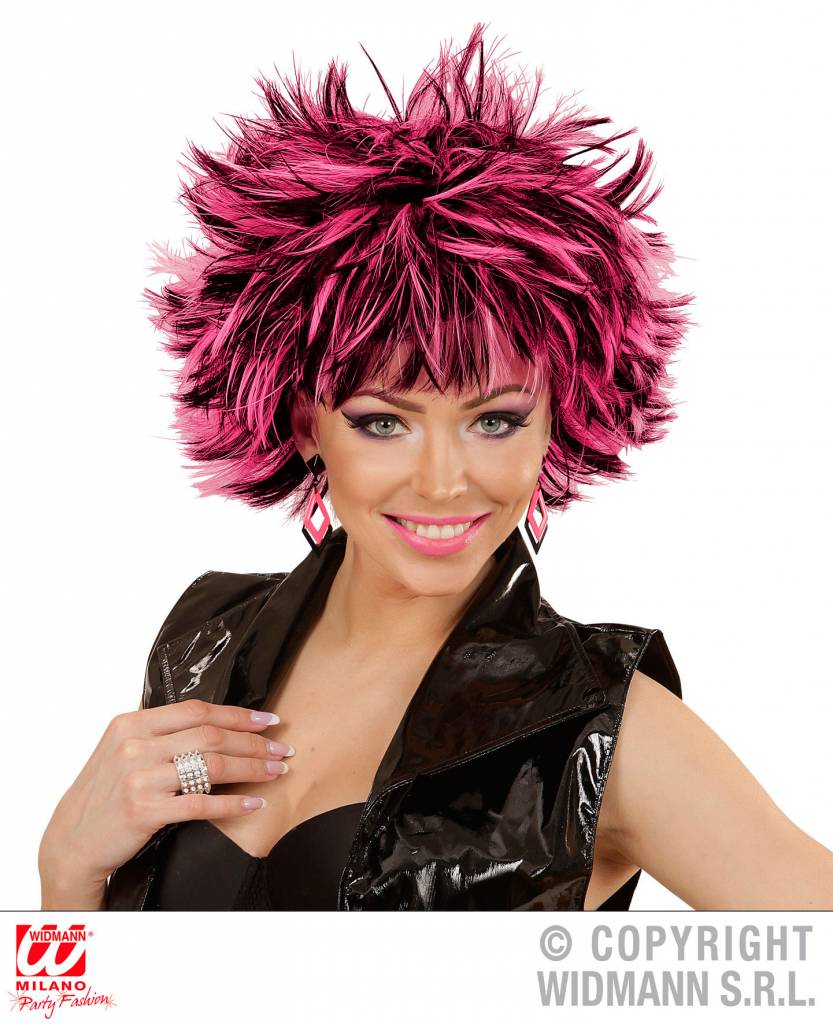 Coupe ravage pruik zwart met roze voor carnaval en spetterende party's