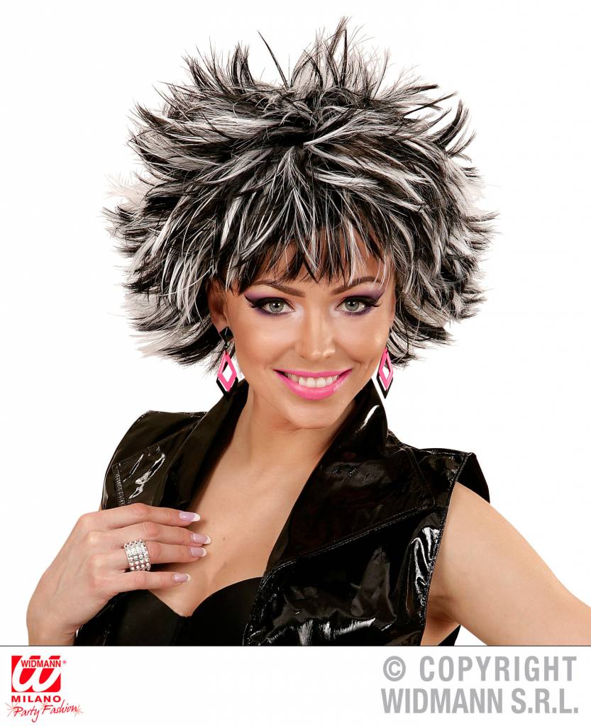 Coupe ravage pruik zwart met wit voor spetterende party's