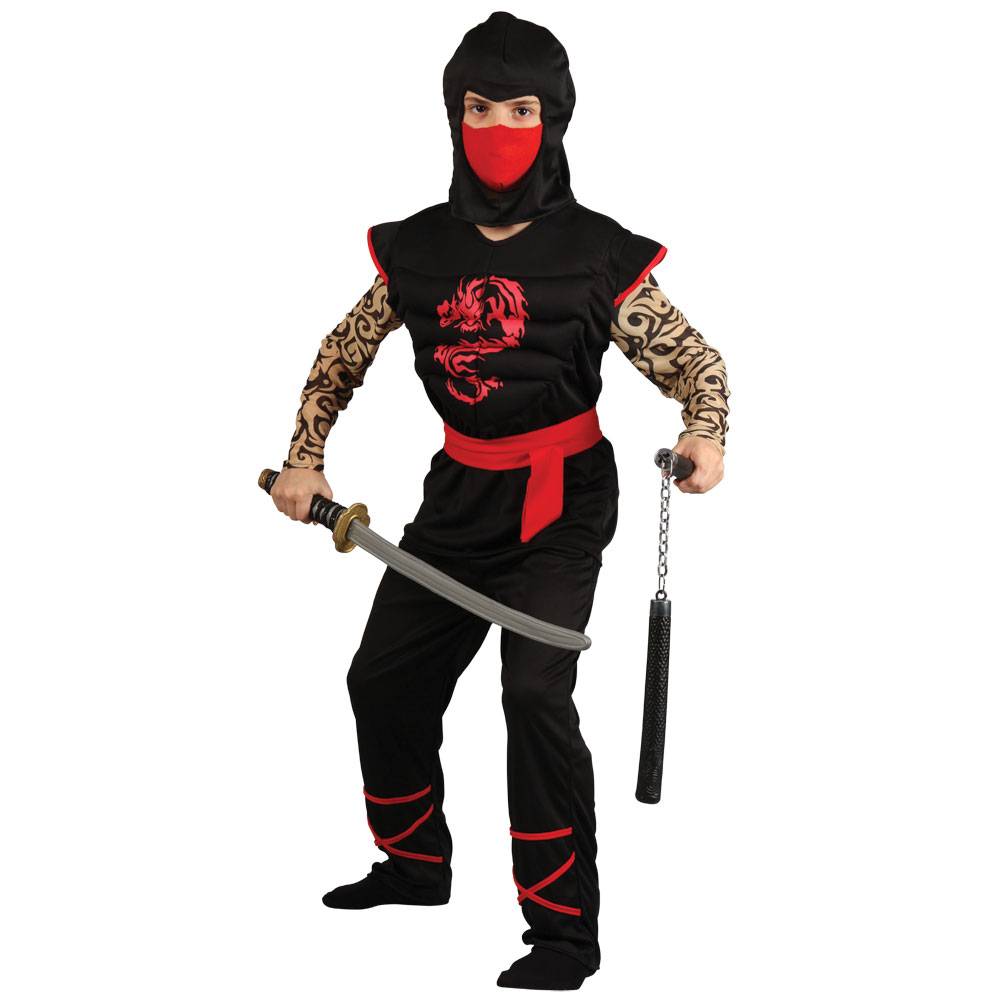 Fout Ninja gevechtspak voor kinderen: shirt, getatoeëerde arm stukken, broek, hoofdbedekking en masker