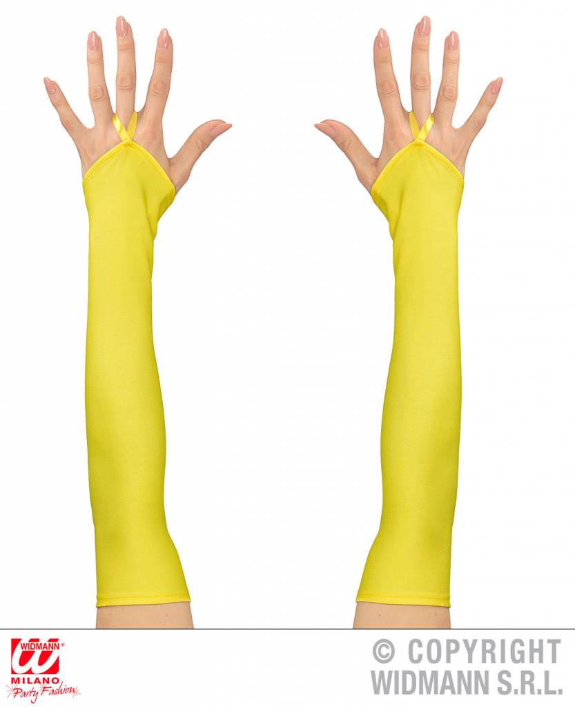 Luxe satijnen handschoenen zonder vingers in de kleur neon geel.