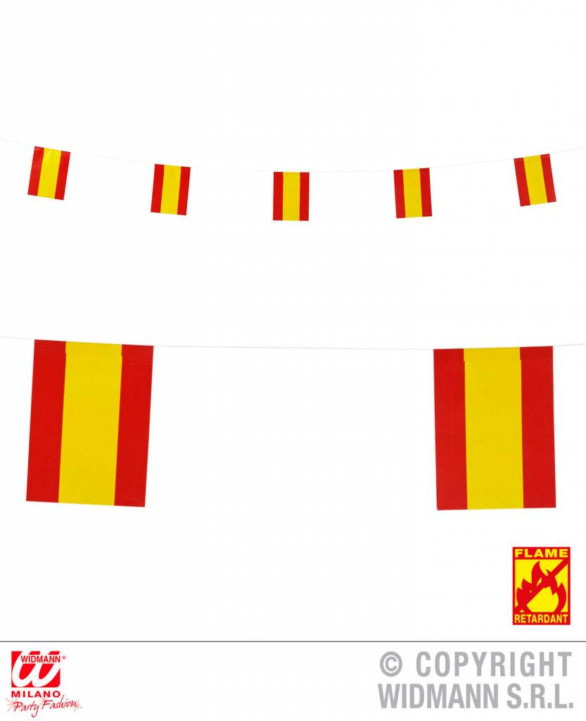 Spaanse vlag feestslingers voor het versieren van een ruimte voor feestje en Spaanse party's. Deze Spaanse slingers zijn brandveilig
