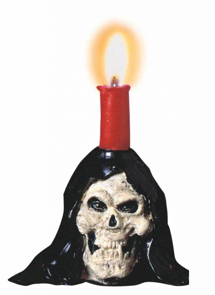 Kandelaars met kaars voor halloween. speciaal voor ahlloween zijn hier kandelaars met kaarsje die de sfeer rond halloween nog wat sinister kunnen vergroten. Er zijn pompoenkandelaars maar ook kandelaars met een doodskop.